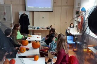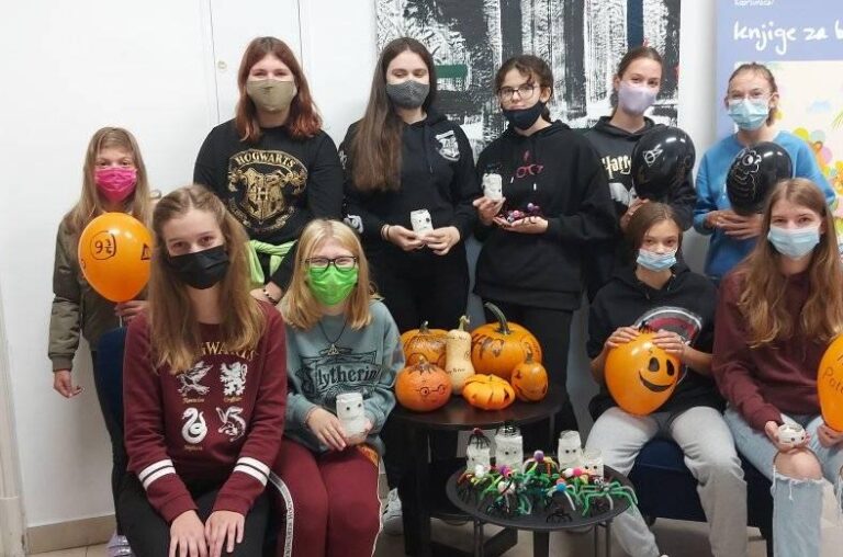 Ciklus “Godišnja doba s Harryjem Potterom” nastavljen radionicom “Jesen u Hogwartsu” 13. listopada 2021. Prva jesenska radionica u ciklusu programa „Godišnja doba s Harryjem Potterom“ namijenjenog mladima 11-19 godina održana je u subotu, 9.10.2021. s temom „Jesen u Hogwartsu“. Zbog velikog interesa, susreti su ponovo održani u dva termina, 9-11 i 11-13 sati, kako bi što više mladih moglo sudjelovati, s obzirom da je zbog još uvijek važećih epidemioloških mjera broj osoba koliko ih smije boraviti u prostoru Makerspacea, gdje se program odvijao, ograničen na deset polaznika. Dvadesetak zaljubljenika u svijet Harryja Pottera tako se u dva susreta još jednom okupilo kako bi ugodno i zabavno proveli subotnje prijepodne u društvu vršnjaka koji vole čitati sličnu literaturu i imaju zajedničke interese. Kroz zabavne i kreativne aktivnosti, otputovali su u mašti ponovo nakratko u školu za čarobnjake Hogwarts, gdje su ih čekala čudnovata fantastična bića i likovi koji su bili inspiracija za kviz i kreativnu radionicu. Najuspješniji u kvizu, već po običaju, nagrađeni su simboličnim nagradama, a potom su knjižnicom u kreativnom dijelu radionice zavladali mali neobični paukovi napravljeni od kestena, slatki šišmiši i simpatične mumije – svjetiljke izrađene od recikliranih staklenih bočica. Bilo je tu i pravih i papirnatih bundeva, pa i balona koje su vješte ruke sudionika radionice ukrasile motivima iz Harry Potterovog svijeta. Zanimljivo je da su neke od donesenih bundeva polaznici sami uzgojili od sjemenja posađenog na proljetnoj radionici iz istog ciklusa, “Travarstvo”. Svoje uratke mladi „čarobnjaci“ ponijeli su za uspomenu kućama, a voditeljice radionice Valentina Mikec i Ljiljana Vugrinec, uz pomoć knjižničnih volonterki Marije Vugrinec i Blanke Bunić već pripremaju novi Harry Potter susret koji će se održati 6. studenog 2021., s vrlo zanimljivom i neobičnom temom – „Dobrodošli na Odjel zabranjenih knjiga!“
