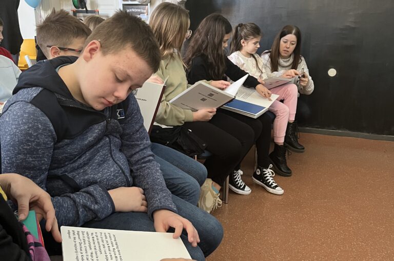 Knjižnica sudjelovala u projektu „Kako biti prijatelj“ – brajica u 50 knjižnica 6. veljače 2025. Knjižnica i čitaonica „Fran Galović“ Koprivnica, 5.2. sudjelovala je u projektu „Kako biti prijatelj“ – brajica u 50 knjižnica. Program je provela udruga „Kreativni oslonac“, a u suradnji s Udrugom slijepih Koprivničko-križevačke županije. U inkluzivnoj radionici sudjelovali su učenici 4. razreda OŠ „Đuro Ester“ Koprivnica koji su se upoznali s pismom slijepih, Brailleovim pismom i jezikom gluhih te kako se ispravno odnositi prema osobama s invaliditetom. Zajedno su čitali na Brailleovom pismu i znakovnom jeziku taktilnu slikovnicu “Mačak Krešo se pita: Koje je boje srce moje?” koju je udruga i donirala koprivničkoj knjižnici te se može posuditi u Dječjem odjelu. Ova taktilna slikovnica sadrži tekst na Brailleovom pismu i uvećanom tisku. Priča je to o toleranciji i prihvaćanju različitosti koje mačak Krešo otkriva ispitujući o boji svog srca. U slikovnici se nalaze QR kodovi za audio i video priču na znakovnom jeziku. Sudionici ovog projekta naučili su da svima možemo biti prijatelji!