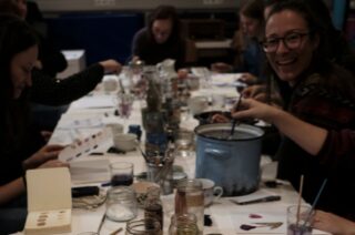 Osvrt na radionicu Kružno stvaranje prirodnim bojama 10. studenoga 2025. U subotu 8. 11. 2025. u 10 sati u Makerspaceu Knjižnice i čitaonice „Fran Galović“ Koprivnica održana je radionica „Kružno stvaranje prirodnim bojama“. Dvanaest polaznika s voditeljicom Ivanom Biočinom istraživalo je prirodne boje, tinte i pougljenjeno drvo. Svaka boja i tinta predstavljena je u kontekstu sezone/godišnjeg doba koje joj pripada, a voditeljica je polaznike upoznala s osnovama njihove izrade te divljim i uzgojenim lokalnim biljkama od kojih se mogu dobiti kvalitetne tinte poput bazge, gospine trave, izabele, šipka, kadifa, oraha, pelina, hibiskusa, koprive, ali i s nekim bezvremenskim klasicima prirodnih boja poput indiga, bojadisarske kamilice, košenila, kempeče-drva i kane. Polaznici su učili o paleti boja specifičnoj za pojedino godišnje doba i imali su priliku proučiti dvije boje koje su pripremljene na samoj radionici – boju od vinobojke i boju od izabele, koje su odmah i testirane. Osim testiranja boja i eksperimentiranja s njihovim međusobnim kombinacijama kao i dodacima poput željeza i sode bikarbone, radionica je ostavila prostor i za slobodno izražavanje, free style slikanje i promišljanje, a polaznici su kući, osim puno lijepih dojmova, ponijeli i lako primjenjive recepte za izradu prirodne tinte, kao i preporuku za knjigu „Make Ink“ iz fonda Knjižnice i čitaonice „Fran Galović“ Koprivnica. Radionica je organizirana u suradnji s Atelierima Koprivnica i dio je rezidencijalnog programa AK galerije Kompleksi: (su)život ljudi i prostora. Program tematizira kompleks bivše koprivničke vojarne, gdje se nalazi galerija, a cilj je podignuti razumijevanje arhitekture napuštenih i(li) prenamijenjenih vojnih prostora te ih postaviti u odnos sa zajednicom i sadašnjošću. U 2025. godini u sklopu rezidencijalnog programa provodio se projekt Ivane Biočine „Krug iscjeljenja“, a ova radionica bila je samo jedna u nizu aktivnosti projekta. Realizaciju projekta sufinancirali: Ministarstvo kulture i medija RH Grad Koprivnica Koprivničko-križevačka županija Projekt se provodi uz podršku Zaklade Kultura nova